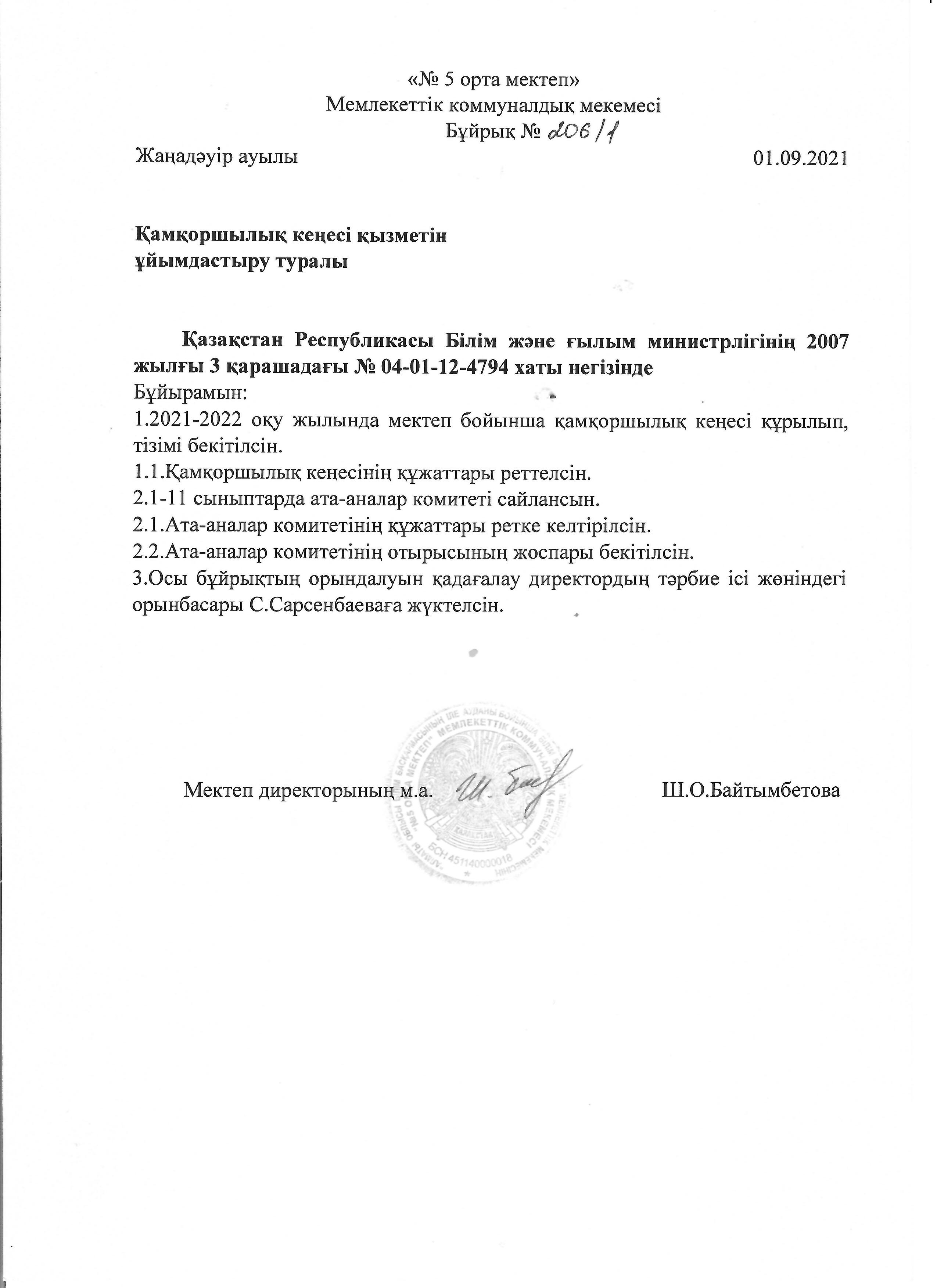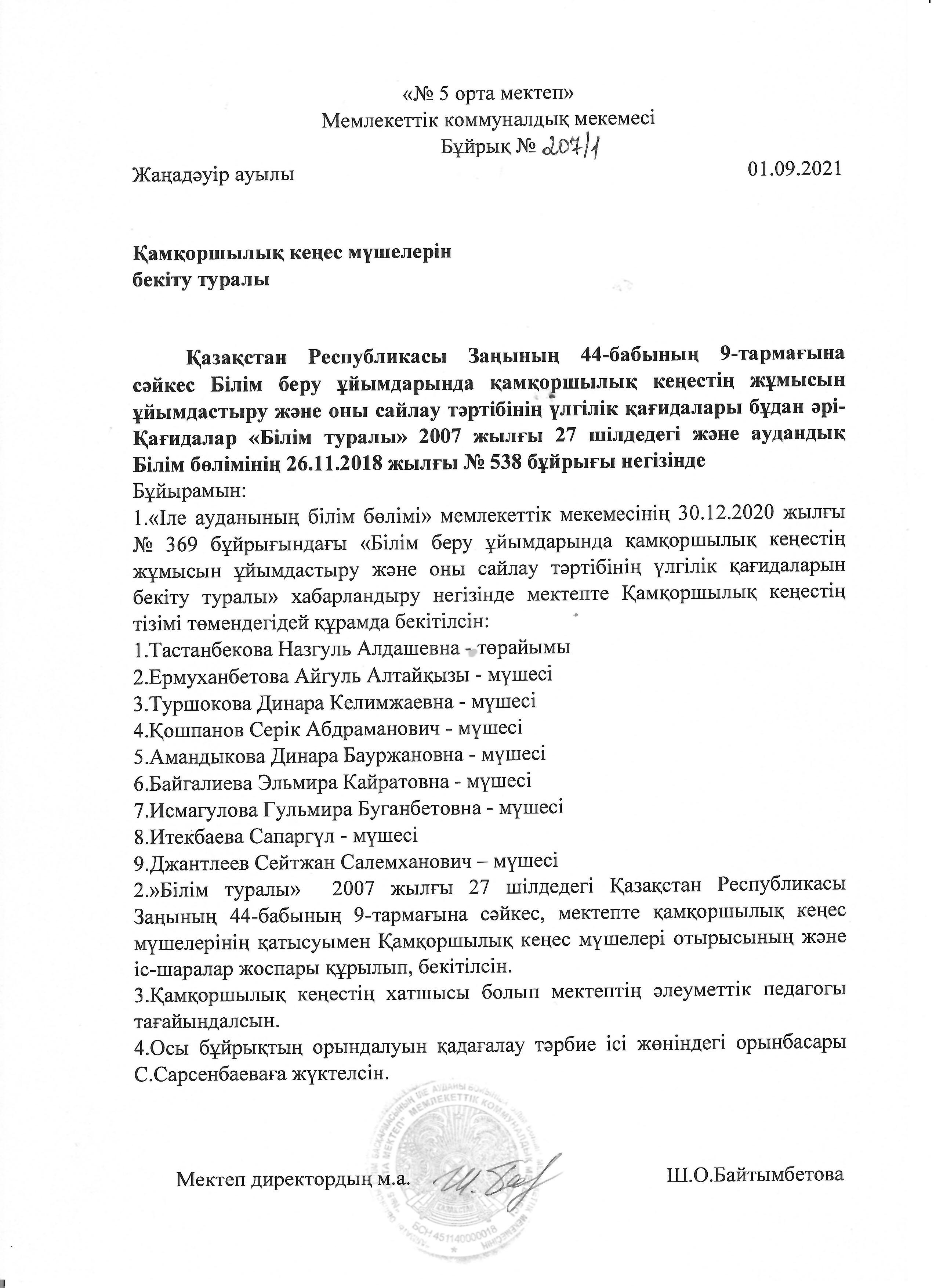 » » » Қамқоршылық кеңес бұйрығы, жоспары, отырысы және тізімі