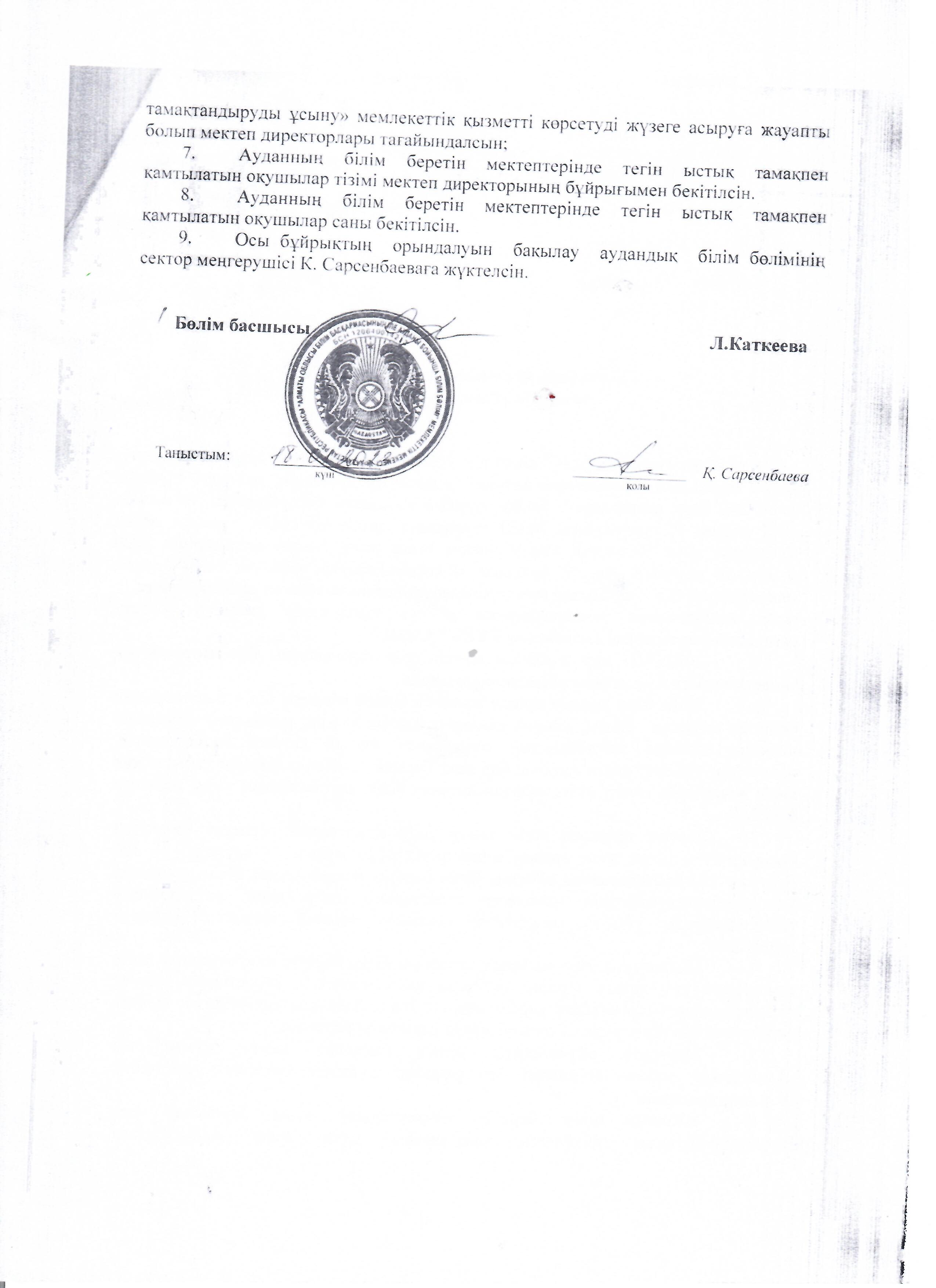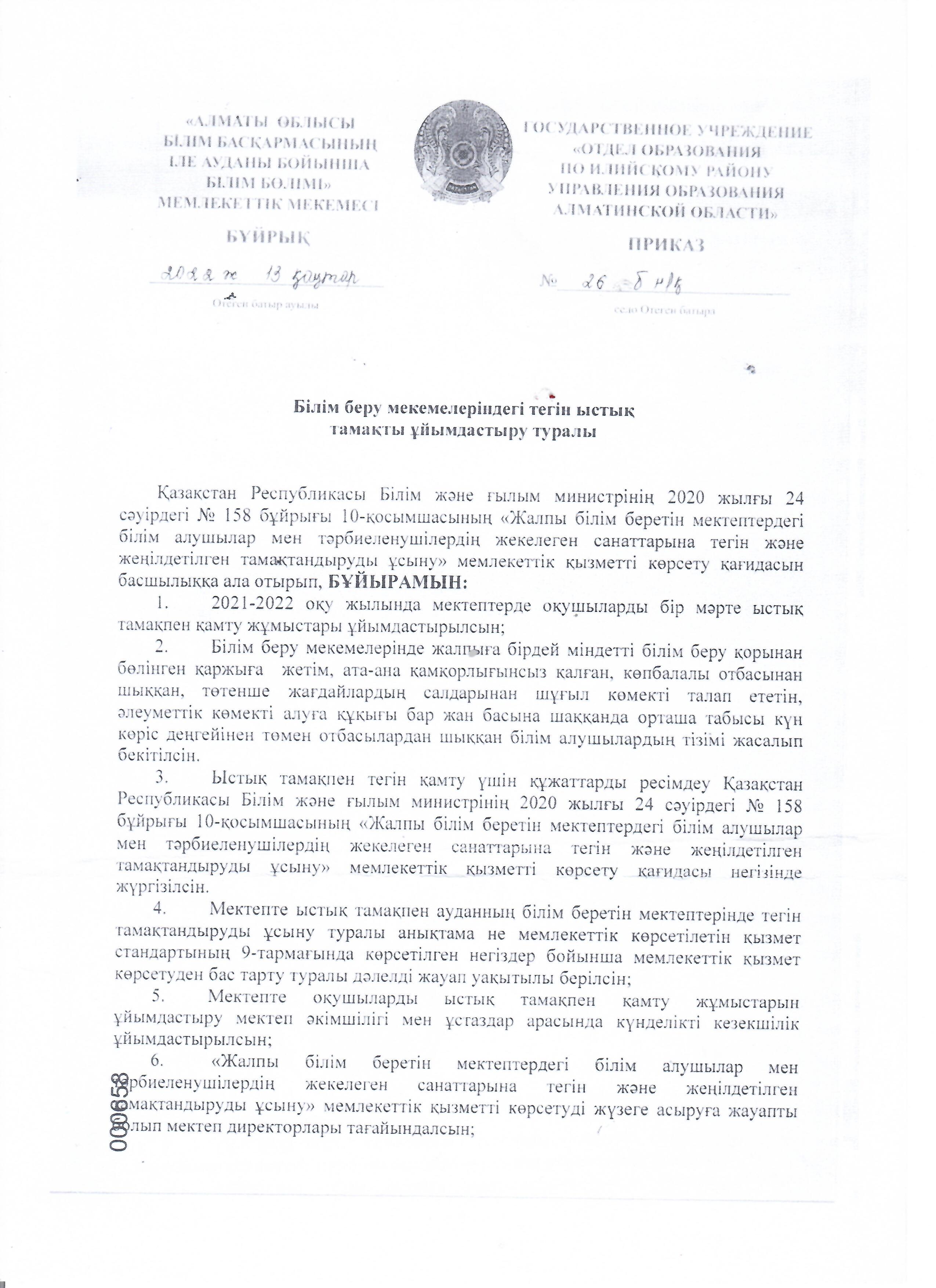 Тамақтандыру бұйрық » №5 ОРТА МЕКТЕП