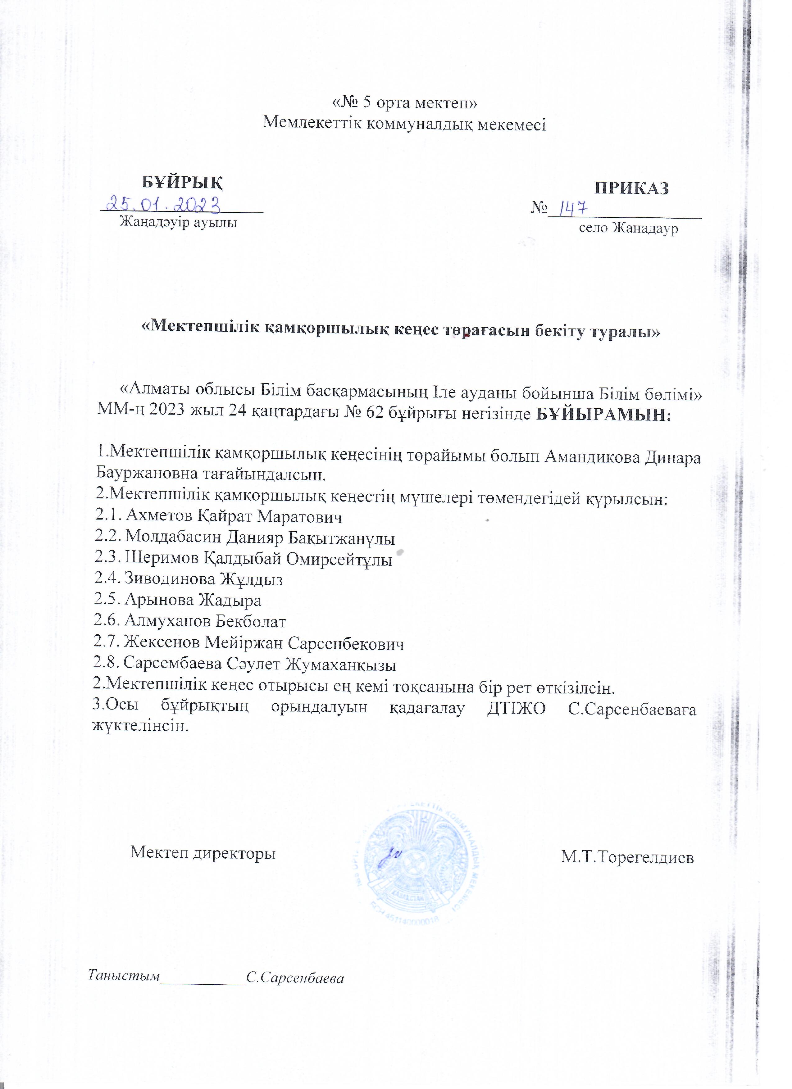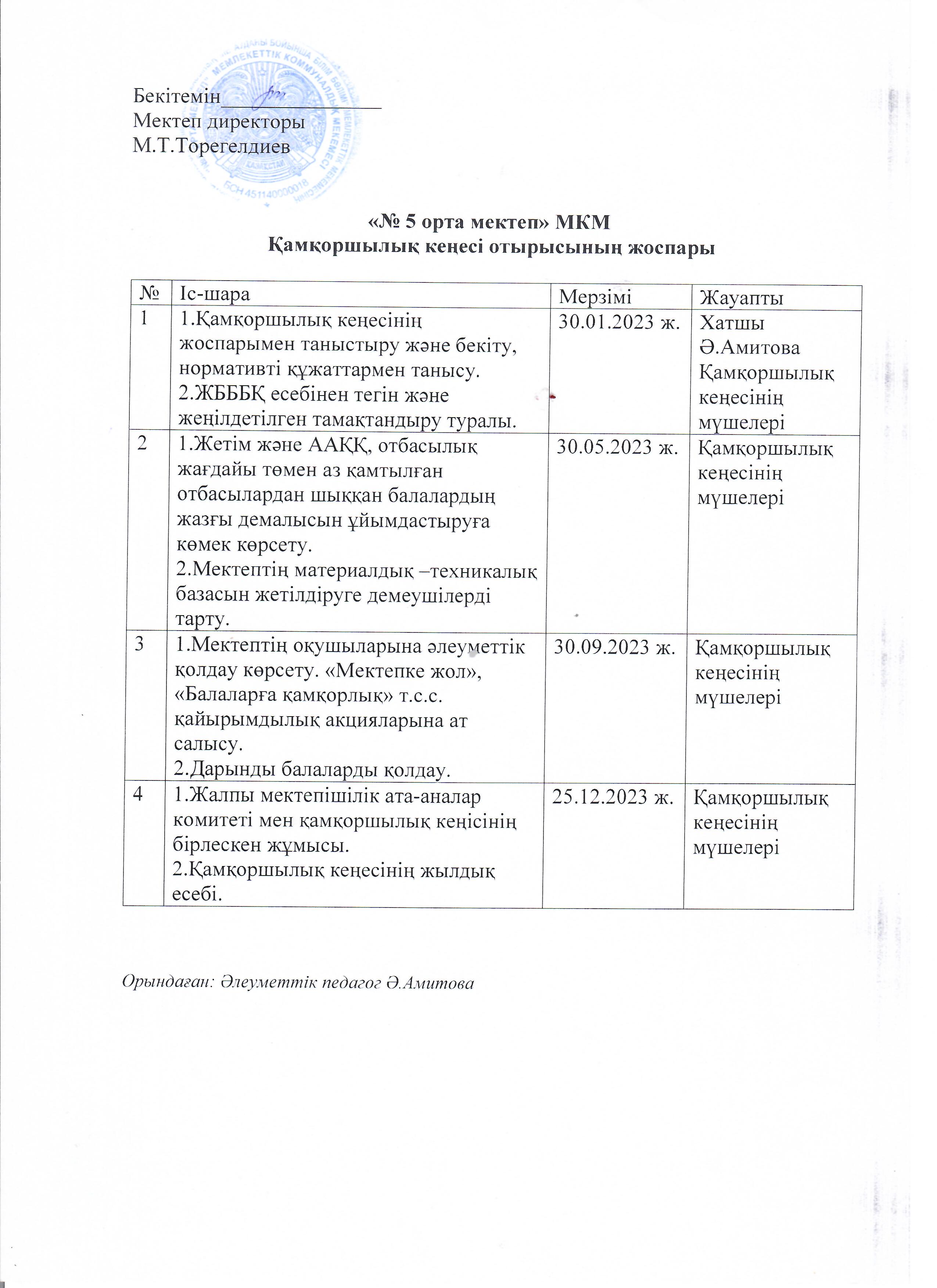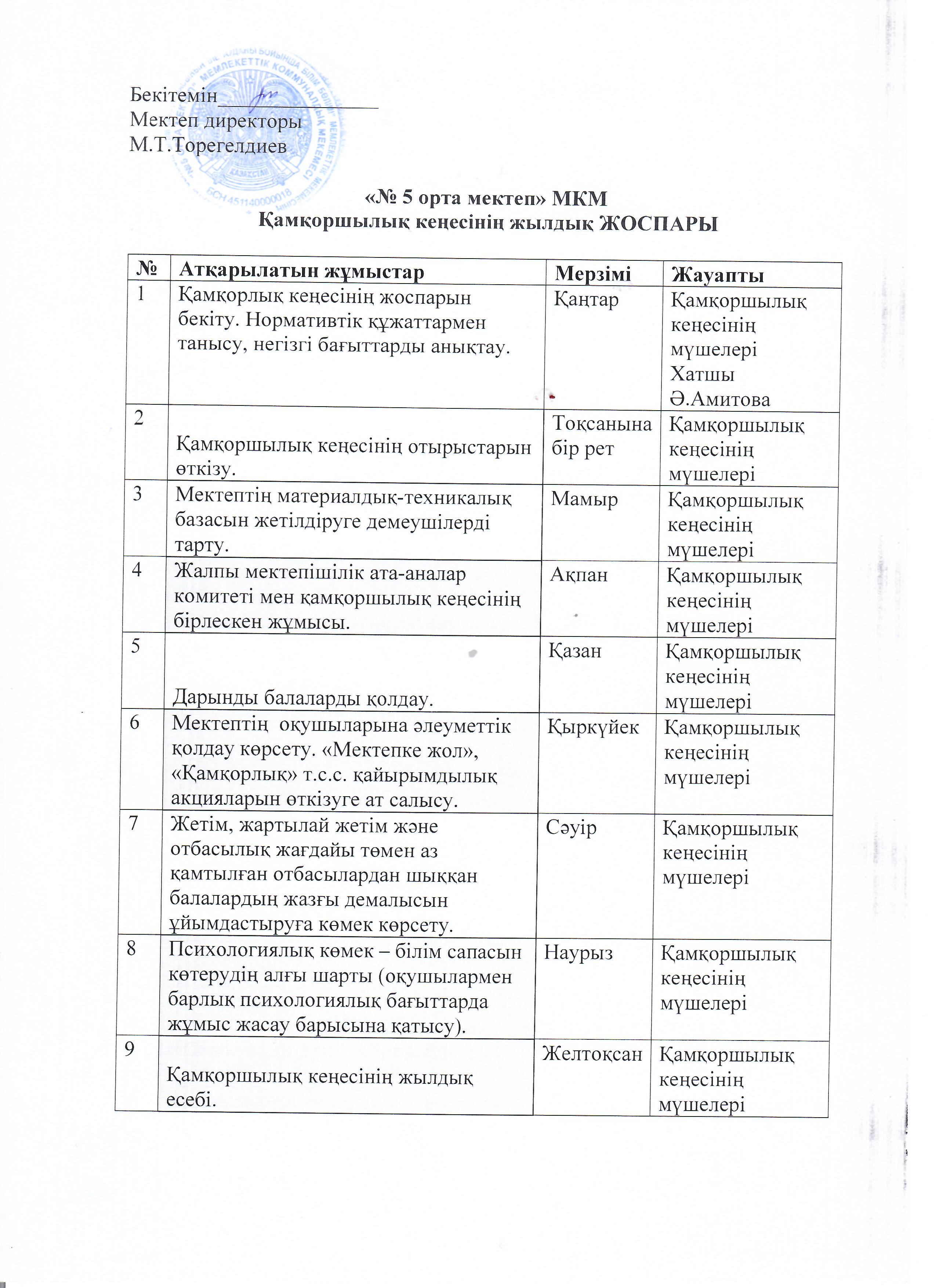 Қамқоршылық кеңес бұйрығы, жоспары, отырысы және тізімі » №5 ОРТА МЕКТЕП