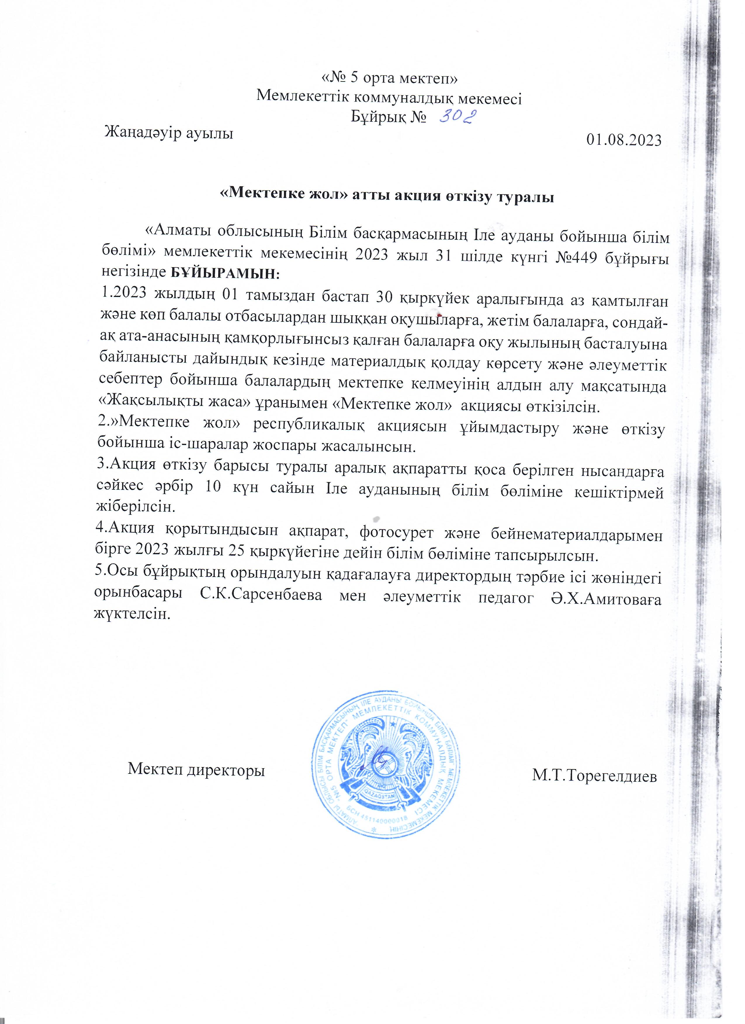 "Мектепке жол" жалпы республикалық акциясы » №5 ОРТА МЕКТЕП