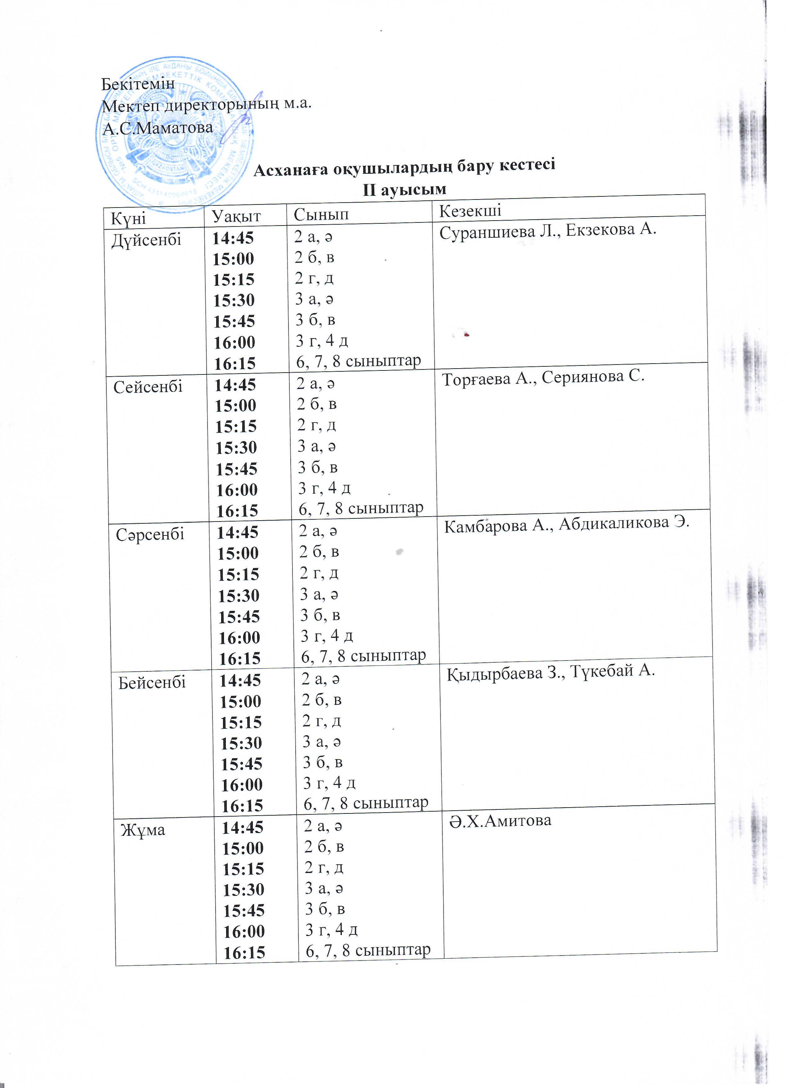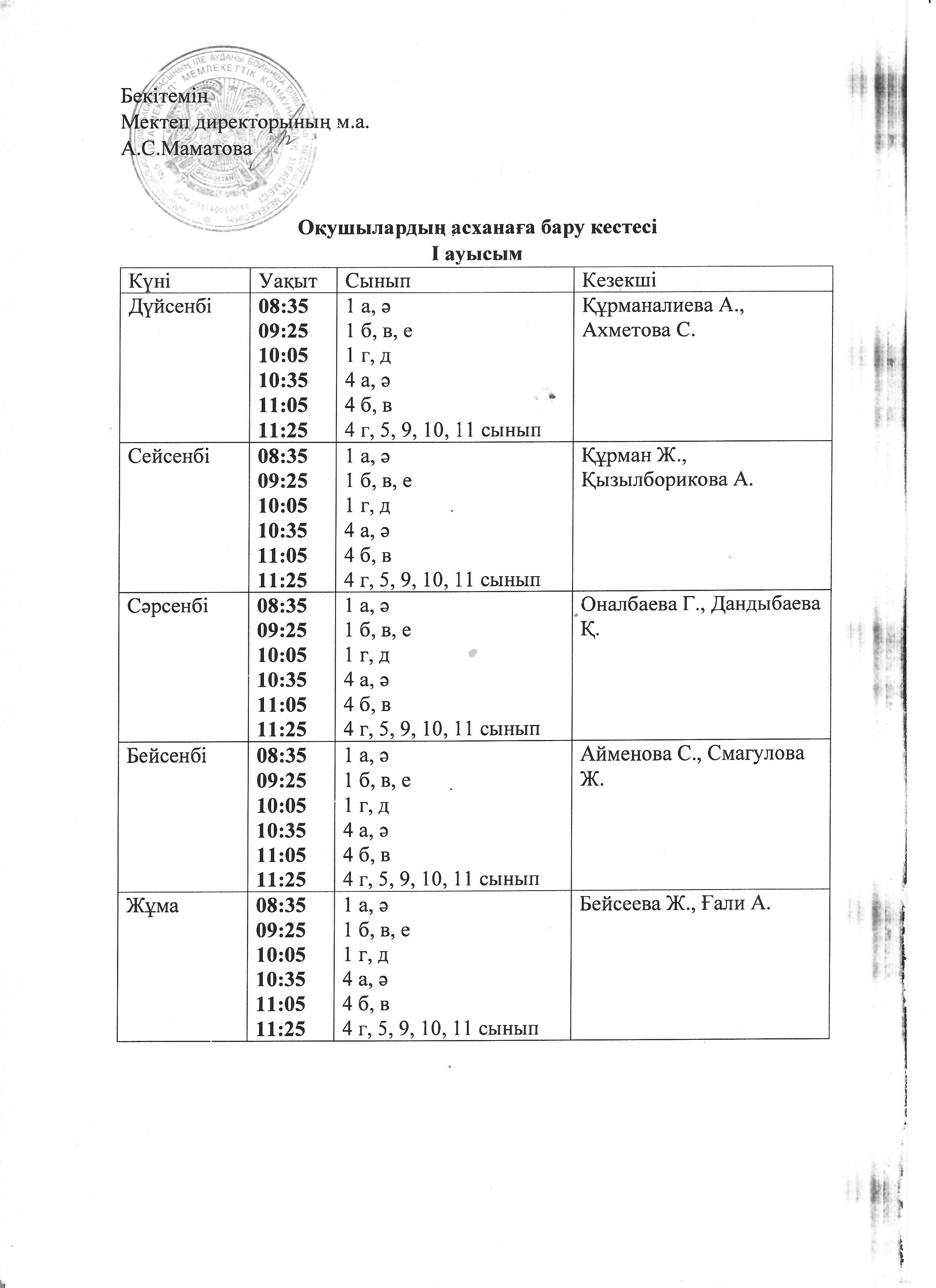 Оқушылардың асханаға бару кестесі » №5 ОРТА МЕКТЕП