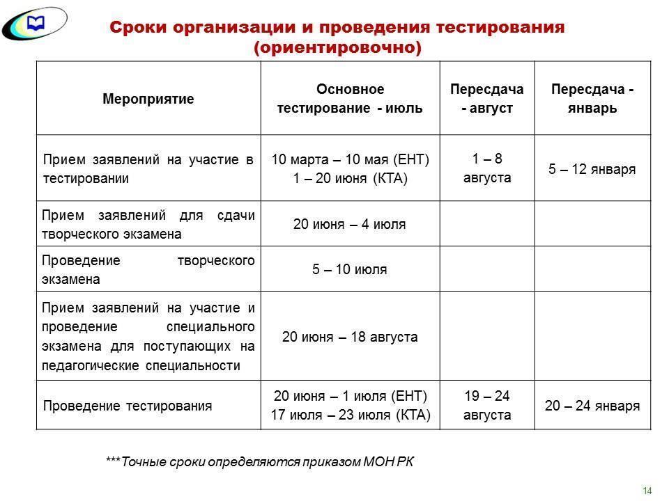 Өтініштерді қабылдау және емтихан 20 маусым нан 18 тамыз аралығында жүзеге асырылады.