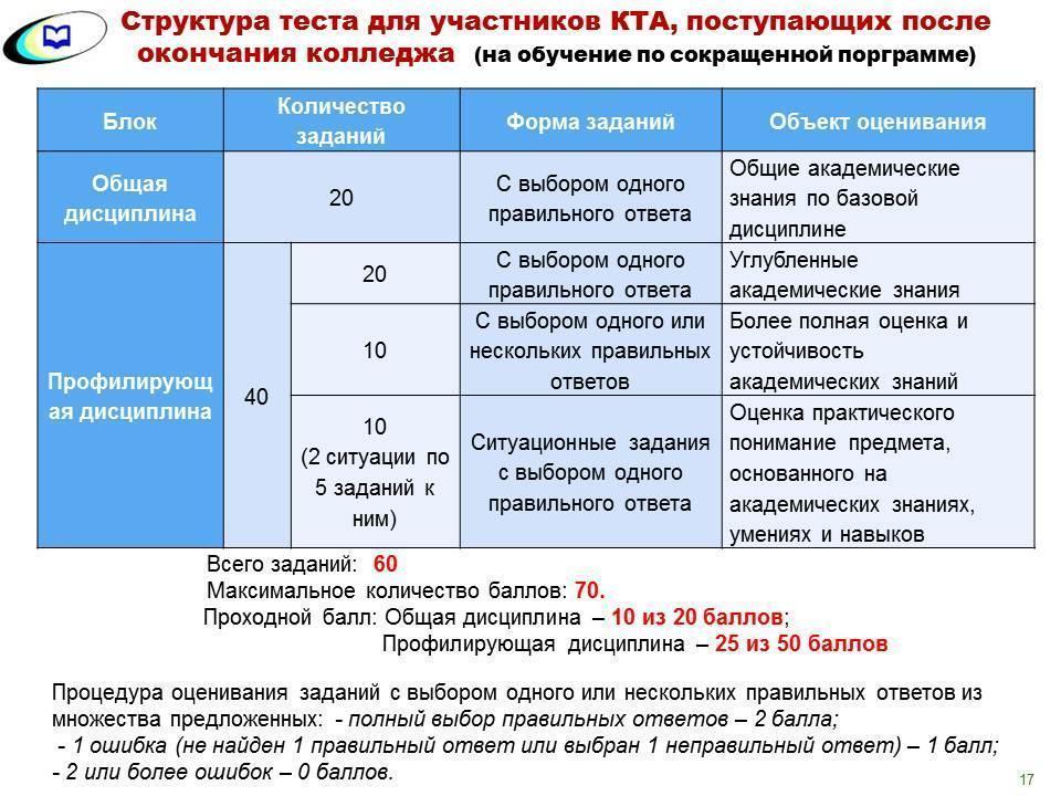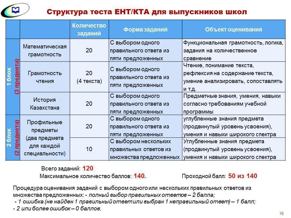 Шығармашылық мамандықтарға түсетін бітірушілер үшін: Қазақстан тарихы, оқу сауаттылығы (оқу тілі) тестілеу бөлімі бойынша баллдар ескеріледі.